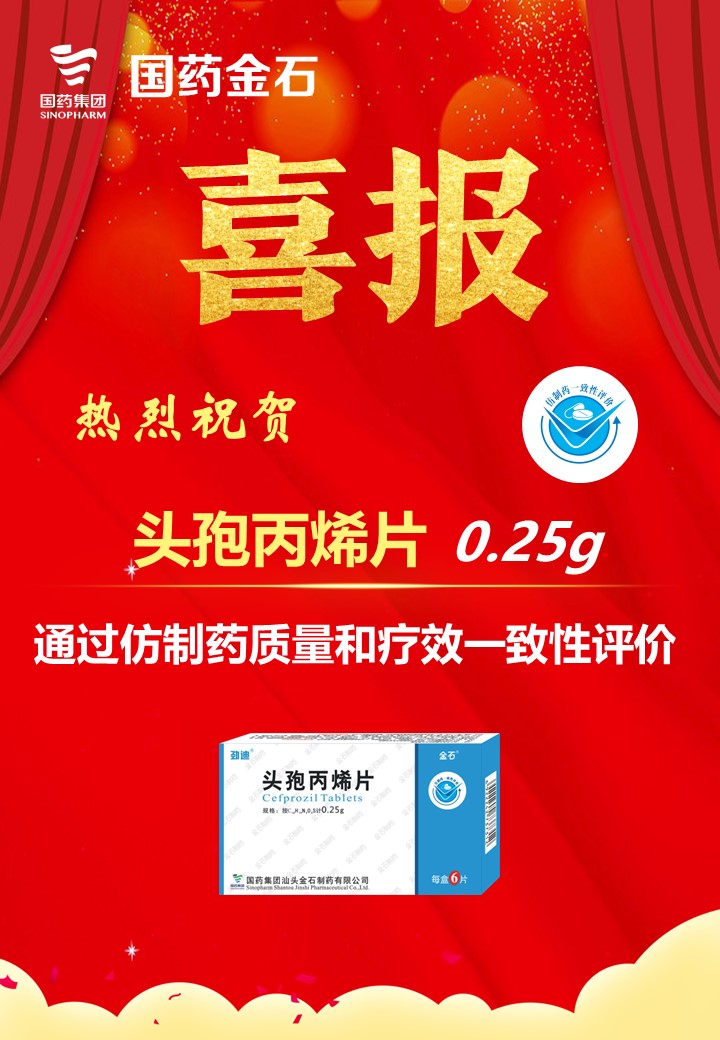 克日,,, ,,,国药集团w66(中国区)最老牌官方网站收到国家药品监视治理局批准签发的0.25g头孢丙烯片《药品增补申请批准通知书》,,, ,,,批准该药品通过仿制药质量和疗效一致性评价,,, ,,,至此,,, ,,,国药w66(中国区)最老牌官方网站已有5个品种9个规格通过仿制药质量和疗效一致性评价,,, ,,,头孢丙烯系列产品所有规格均已过评 。 。。。。。。。