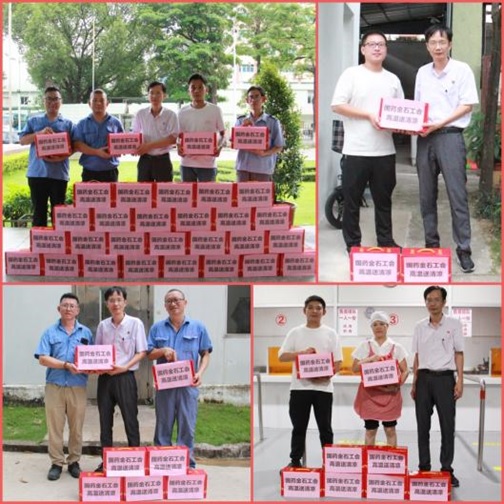 工会主席黄扬彬手持饮品,,,,,,,,将一箱箱满载眷注的王老吉凉茶送到电仪班、锅炉班、食堂班等员工眼前,,,,,,,,一句句“辛勤了!”温馨有力,,,,,,,,满怀着公司对员工深切的眷注。。。。。
