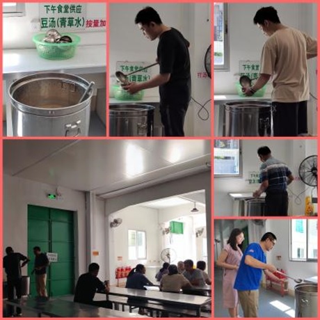 高温难耐,,,,,,,,食堂班为每一位员工全心准备了绿豆冬瓜汤、八宝粥等解暑甜汤。。。。。食堂前厅,,,,,,,,舀取甜汤的员工脸上幸福洋溢,,,,,,,,他们或刚从忙碌的事情中抽身,,,,,,,,或是准备在休息后开展下一项事情。。。。。这一碗碗解暑甜汤,,,,,,,,在酷夏中宛如“解暑使者”,,,,,,,,为员工驱散了夏日的炎热与疲劳,,,,,,,,带来清凉与恬静。。。。。